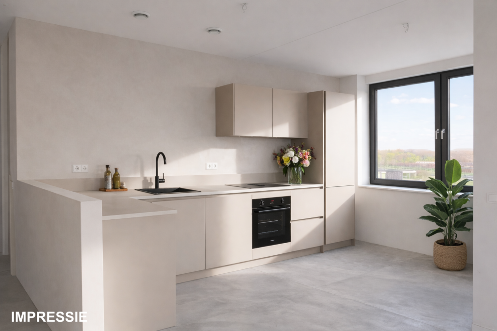 Dit betreft een nieuwbouwappartement waardoor er nog geen beeldmateriaal van de werkelijke situatie voorhanden is. Derhalve geven wij u een eerste indruk middels deze impressiebeelden die een goede weergave van de werkelijkheid zijn. Desondanks kunnen er geen rechten aan worden ontleend. Deze aanbieding geldt uitsluitend als uitnodiging tot bezichtiging.