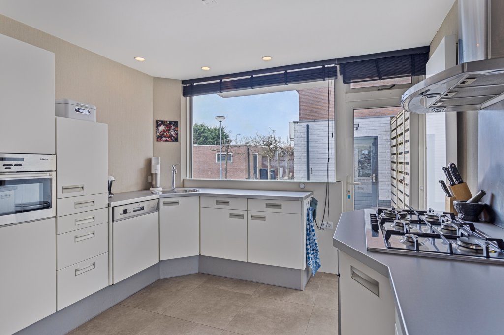Via de voortuin bereikt u de entree van de woning. De hal biedt toegang tot de woonkamer, het separate toilet, de meterkast (volledig vernieuwd in 2023) en de trapopgang. De royale woonkamer wordt gekenmerkt door het vele lichtinval en staat in open verbinding met de semi-open keuken aan de ene kant en met de achtertuin aan de andere kant. De keuken is uitgevoerd in een royale aanbouwopstelling en beschikt over diverse inbouwapparatuur, waardoor kookliefhebbers hier volledig aan hun trekken komen.