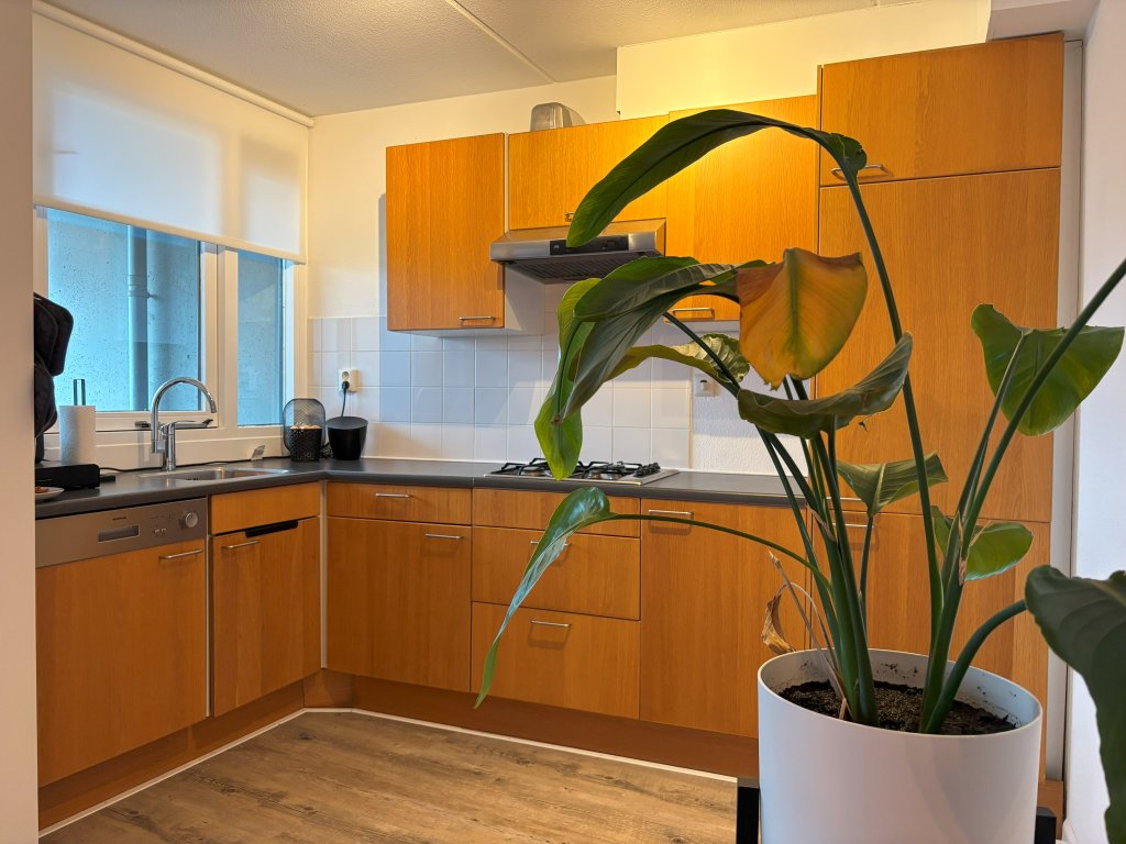 Via galerij toegang het appartement met entree naar sepraat toilet, ruime woonkamer met open keuken (tezamen ca. 36 m²) en toegang tot het balkon. De keuken is voorzien van een aanbouwkeuken voorzien van de navolgende apparatuur; gaskookplaat, koelkast, vriezer, vaatwasser, spoelbak en afzuigkap. Twee slaapkamers (resp. 11 m2 en 5 m2) en volledig betegelde badkamer (ca. 6 m²) v.v. wastafel, douche en aansluitpunt voor witgoedapparatuur. Separate bergruimte met opstelling van de cv-combiketel.